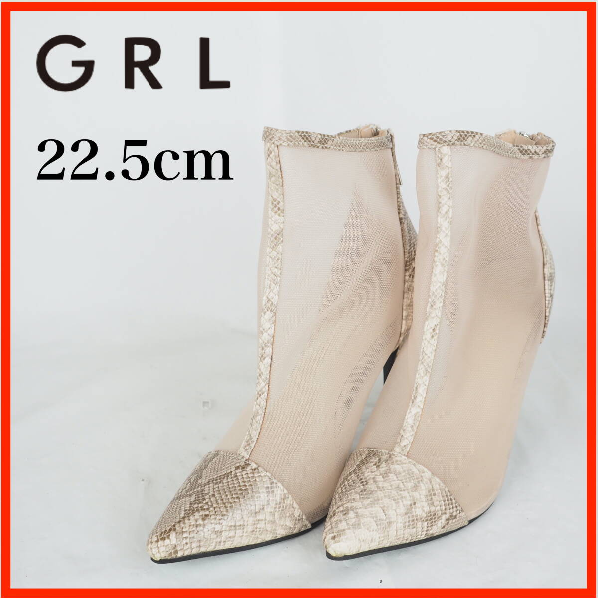 - GB0988*GRL*グレイル*レディースショートブーツ*22.5cm*ベージュ系・パイソン柄