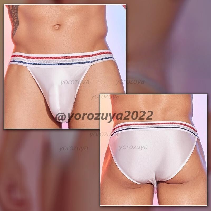> 184-258-8 カラフル シルキー 光沢 ブリーフ フルバック【ホワイトF】男性 メンズ 下着 ショーツ セクシー ゲイ アンダーウェア パンツ.3