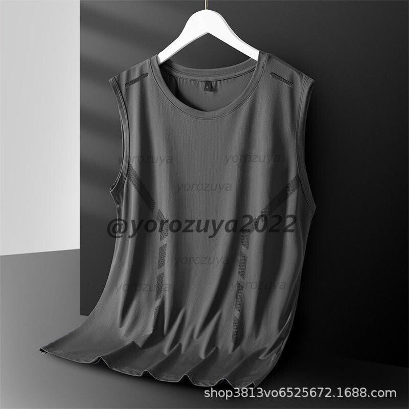 > 185-46-6 アイスシルク メッシュ ノースリーブ シャツ【グレーLサイズ】男性 メンズ インナー 速乾性 タンクトップ Tシャツ スポーツ .1