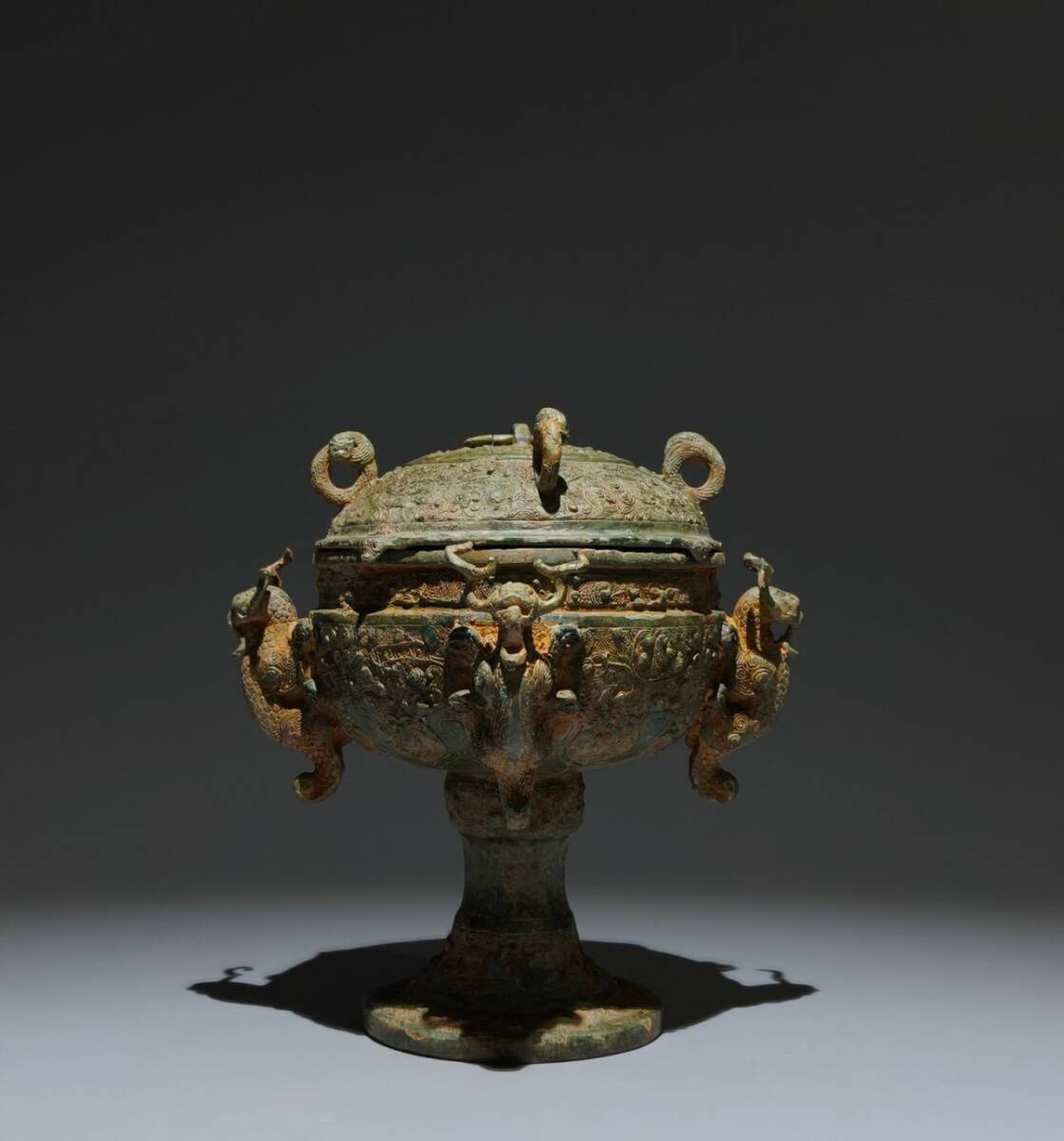 > 永し 戰國時期 青銅器 羽紋四龍豆 銘文 極細工 古銅彫 置物擺件 古美術品 時代物 古董品 収集 骨董品 旧家蔵出 中国唐物 A16