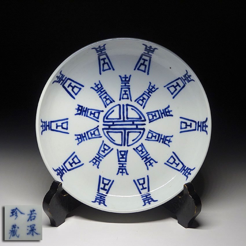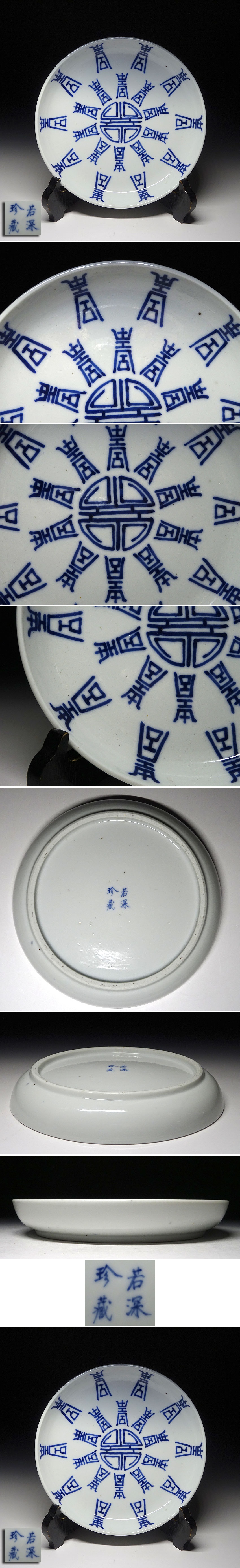 > 緑屋z■ 中国古玩 新渡 染付 皿 若深珍蔵 唐物 時代物 i9/10-6657/29-5#60