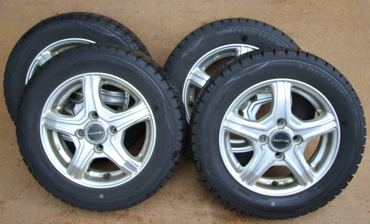> BSアルミホイール+DLスタッドレスタイヤ 4本セット☆155/65R13 2021年製 PCD100 4孔 バリ山 軽自動車 WM02