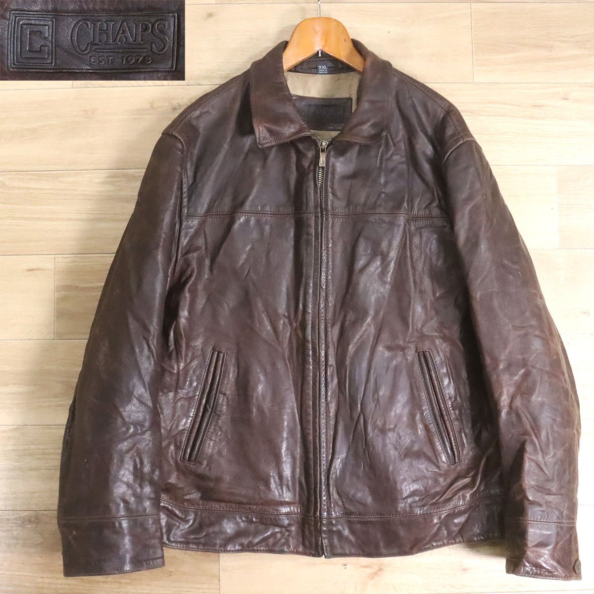 > ?13K/Y6.13-3 CHAPS チャップス レザージャケット 本革 スポーツジャケット レザーブルゾン 革ジャン 皮ジャン XXL