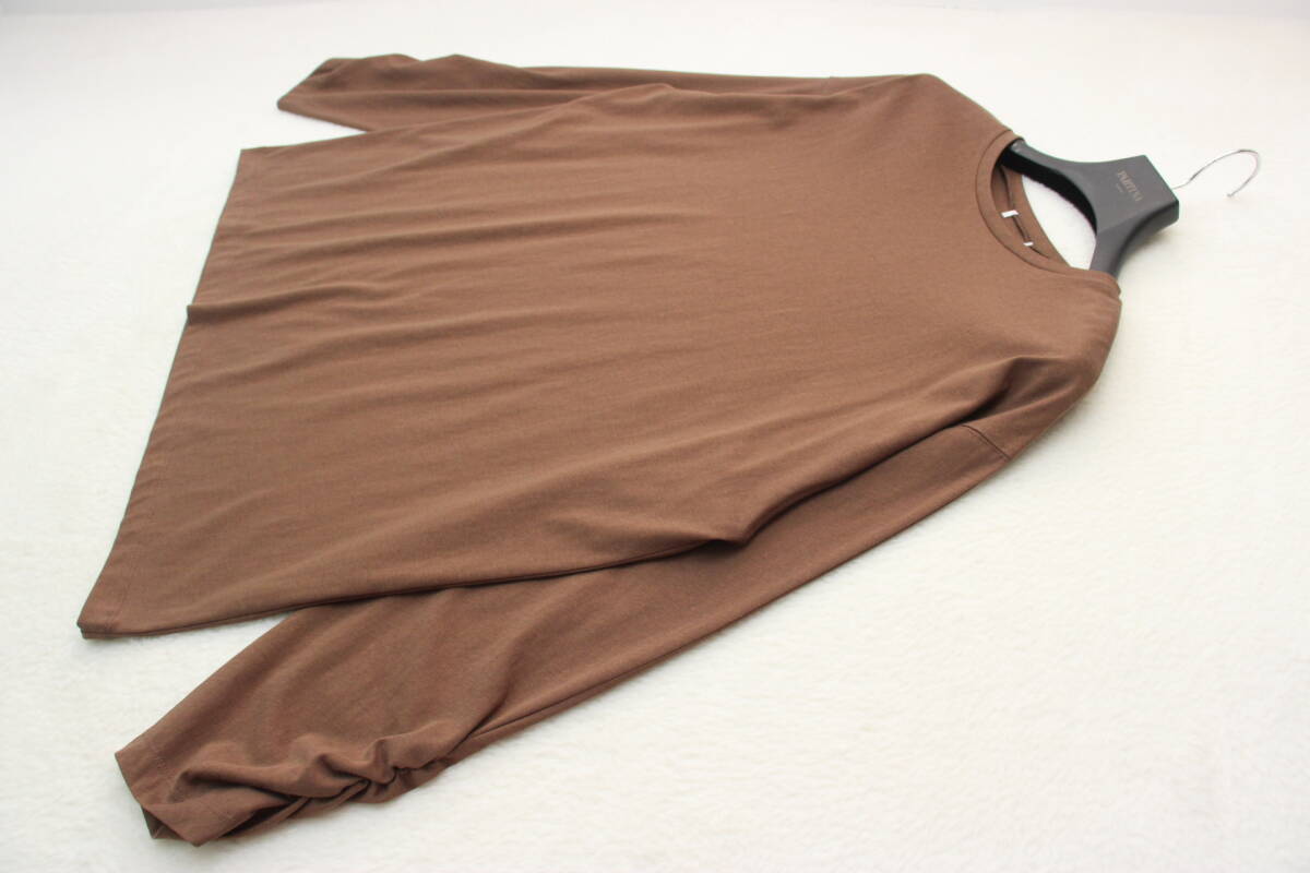 - 5712 新品 シャーリング袖長袖カットソー ブラウンFサイズ