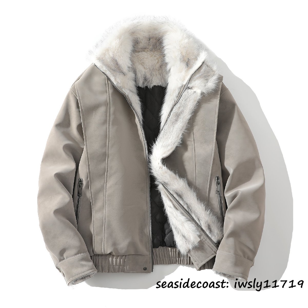- 入手困難■ムートンコート メンズ 中綿 ジャケット 保温防寒 抜群暖か ワークウェア ファーコート 毛皮 ブルゾン バイクウエア グレー 3XL