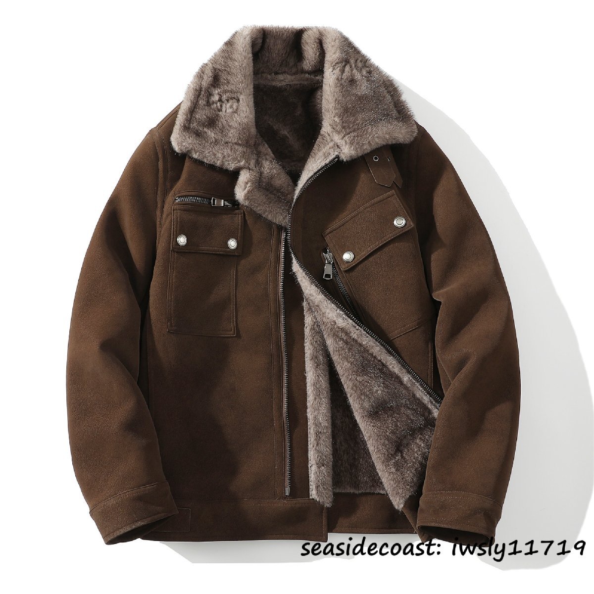 - 超希少■ブルゾン メンズ ムートンコート シープスキン ファーコート 超防寒 裏起毛 厚手 ボアジャケット ジャンバー 毛皮 ライダース L