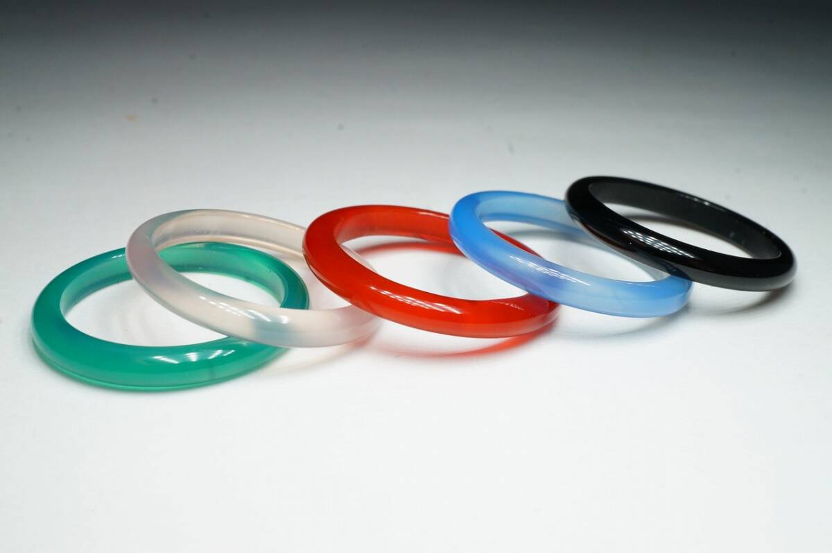 - 希少!原石を加工彫刻!極上アゲート瑪瑙メノウ、オニキス、ローズクォーツ彫刻研磨上質原石使用くりぬきリング【13号】 /5本セット