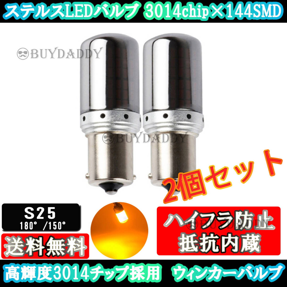 ★この度はご覧頂き有難うございます★ー購入希望です。購入していいですか?といったコメントなどはいりませんのでそのままご購入お願いします。ーお値引きは一切行っておりません。『お値引きできますか?』などのご質問は対応できません。ー別の出品商品と同時に購入したい場合は各ページよりご購入下さい。【S25 150度 ピン角違い 抵抗内蔵ステルスウインカーバルブ 2個セット】その際はリレー交換or抵抗を入れて対処お願いします※輸入品となります。多少の小傷等がある場合をご了承下さい。※何かありましたら評価前にお願い致します(評価後は対応ができない為)ステルスバルブ LED ウィンカーLED 車カスタム年式等により形状は異なりますので、ご確認の上購入お願いしますRAV4,ウインダム,エスティマ,オーリス,カムリ,カローラ ランクス・アレックス,クラウン マジェスタハイエース,ハイラックス,プリウス,ラクティス,ランドクルーザー 100,シグナス,プラドエルグランド,キックス,キャラバン,キューブ,シルビア,ジューク,スカイライン,クロスオーバー,ステージア,セレナ,デイズ,ノート,フェアレディZ,マーチ,ルークス,ローレルCR-V,S2000,インテグラ タイプR,オデッセイ,シビック,フリード,AZワゴン,CX-3,CX-5,CX-7,MPV,スクラム,デミオ,プレマシー,ベリーサ,ロードスターインプレッサ,ワゴン,サンバー,フォレスター,レガシィ B4,ウェイク,コペン,タント,エグゼ,ハイゼット,ミラ,ムーブMRワゴンアルトクルーズジムニーシエラスイフトスペーシア,ソリオ,パレット