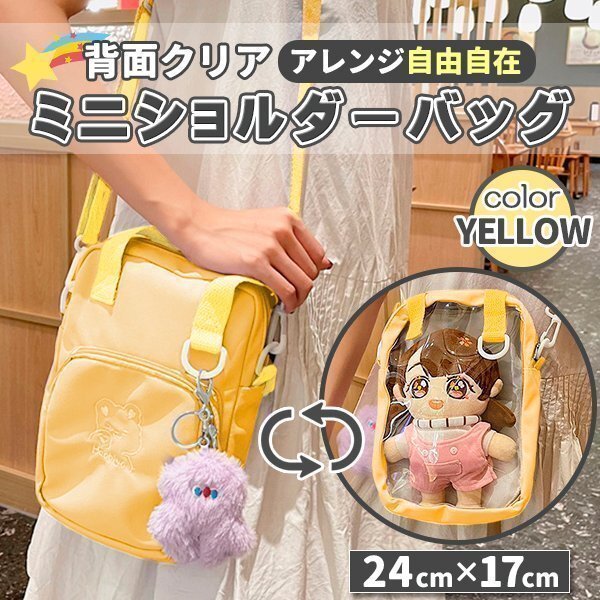 - 痛バッグ ミニショルダー イエロー 黄色 ポーチ 推し ヲタ活 クリア 透明 ショルダーバッグ ショルダー 推し活 見せバッグ ちびぬい