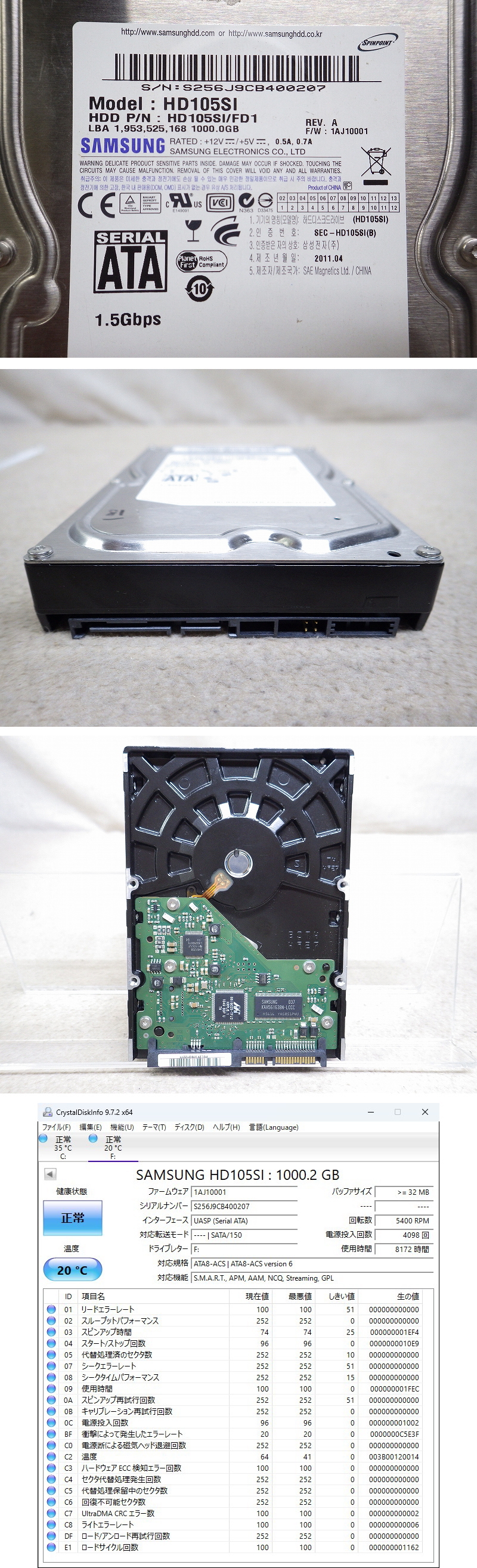 - Kネま2149 SUMSUNG/サムスン 3.5インチ 内蔵HDD 1TB HD105SI パソコン周辺機器 PCパーツ ハードディスク