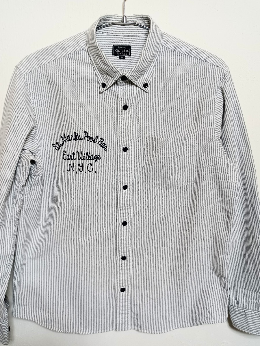 > ●美品 SCHOTT ショット 刺繍入り ワークストライプ 長袖シャツ サイズM●