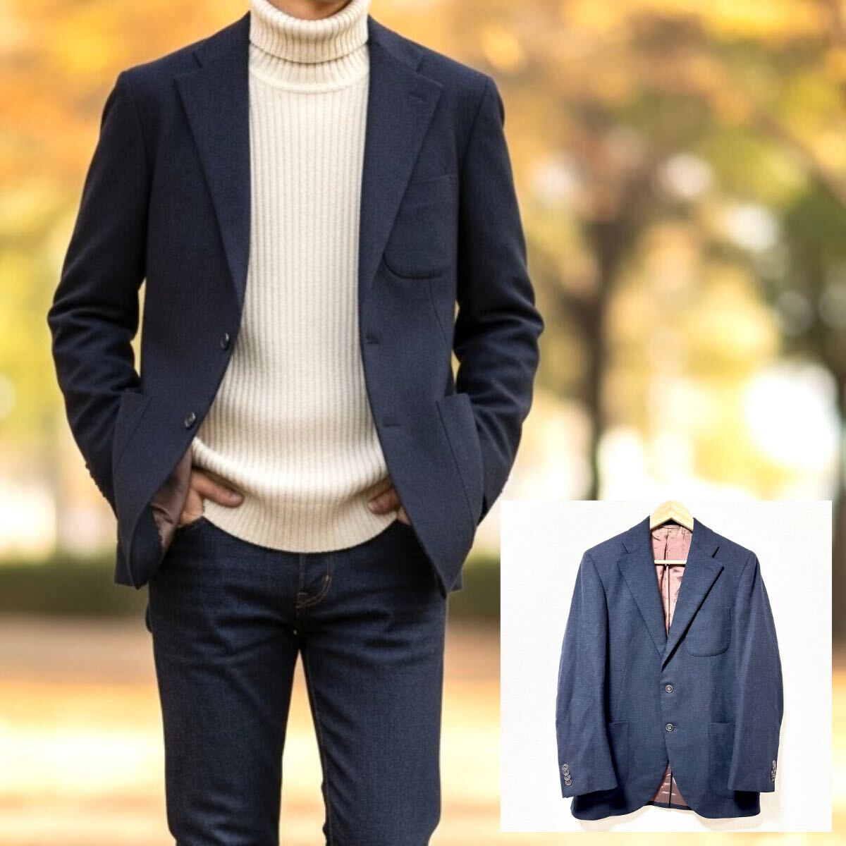 - 日本製◎品のある大人コーデに!【DRESSTERIOR】ドレステリア テーラード ジャケット ブレザー ウール ツイード ネイビー 紺 44 /Y38203SS