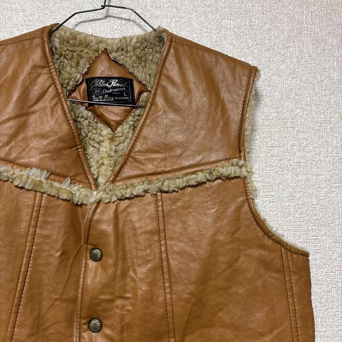 - 70s 【内側ボア】 Golden Thread Brill Bros ビンテージ レザーベスト メンズLサイズ