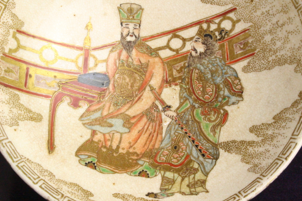 薩摩焼 金彩色繪 平茶碗 「合箱・二重仕覆」