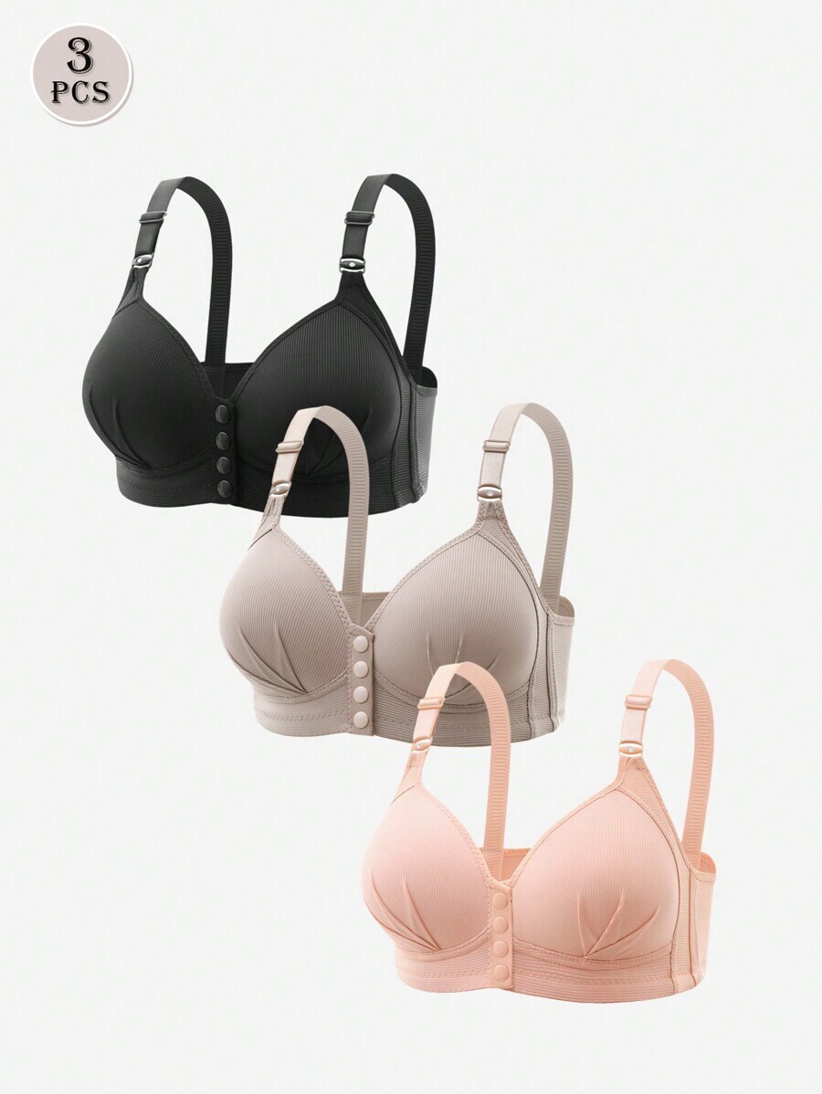 - インティメート ブラジャー 3枚組 レディース フロントホック ノンワイヤー 快適 プッシュアップブラ、カラー展開