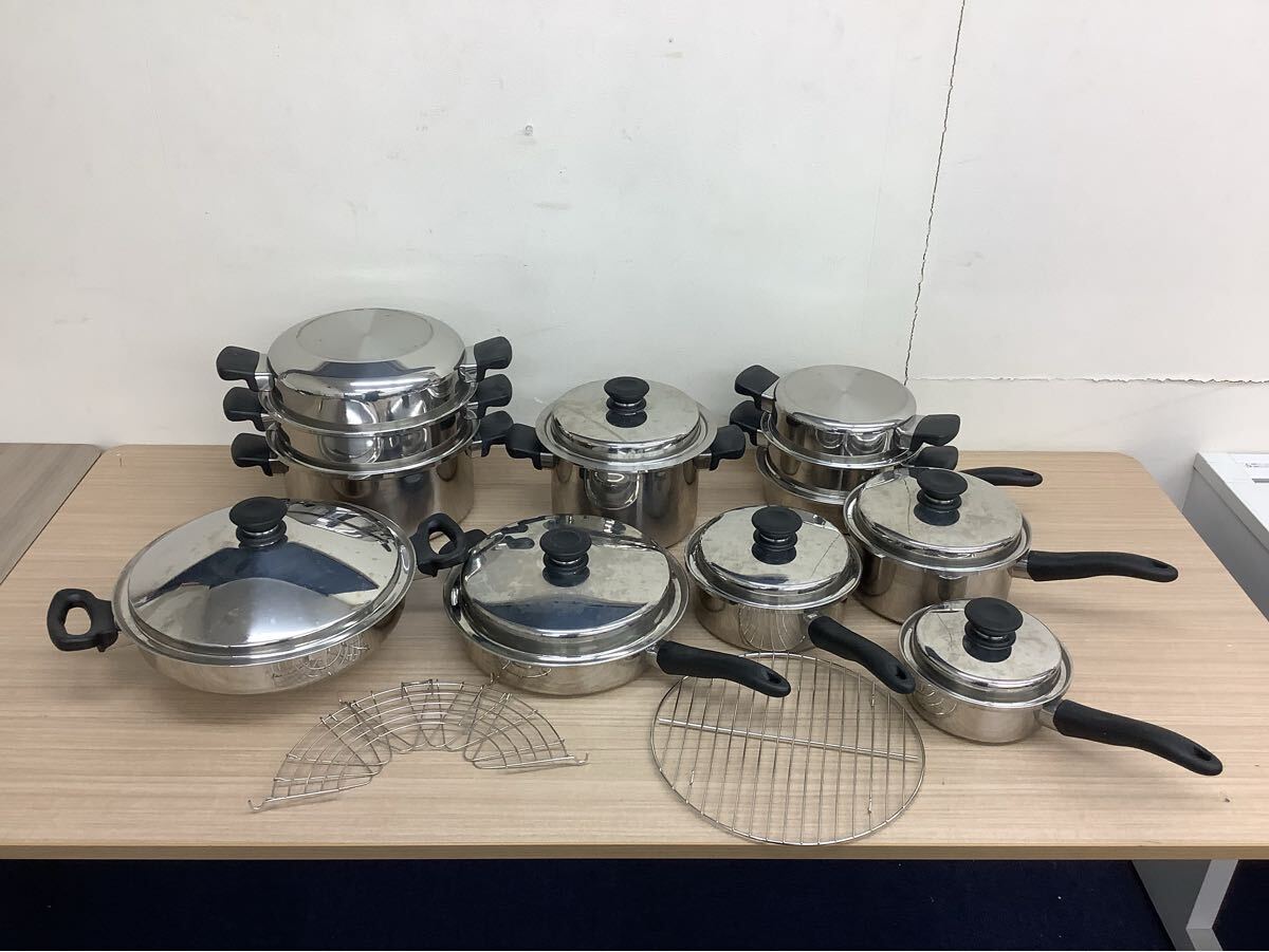 > ◯営NI130-さT160【埼玉発】AmwayQueen 鍋 フライパン まとめ8点売り 18/8ステンレス MULTI-PLY クックウェアセット キッチン用品 調理器具