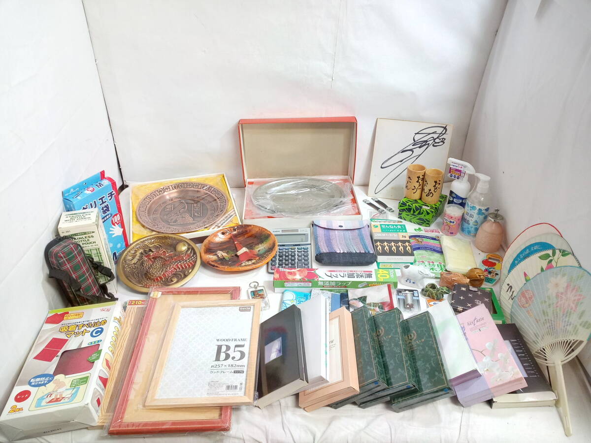 > 【未使用品~USED品】鉄製ブロンズ仕上げ大皿 竹製湯呑 タオルハンカチ他 生活雑貨おまとめセット/小判皿/水筒/楊枝入れ/電卓/12-RSB64