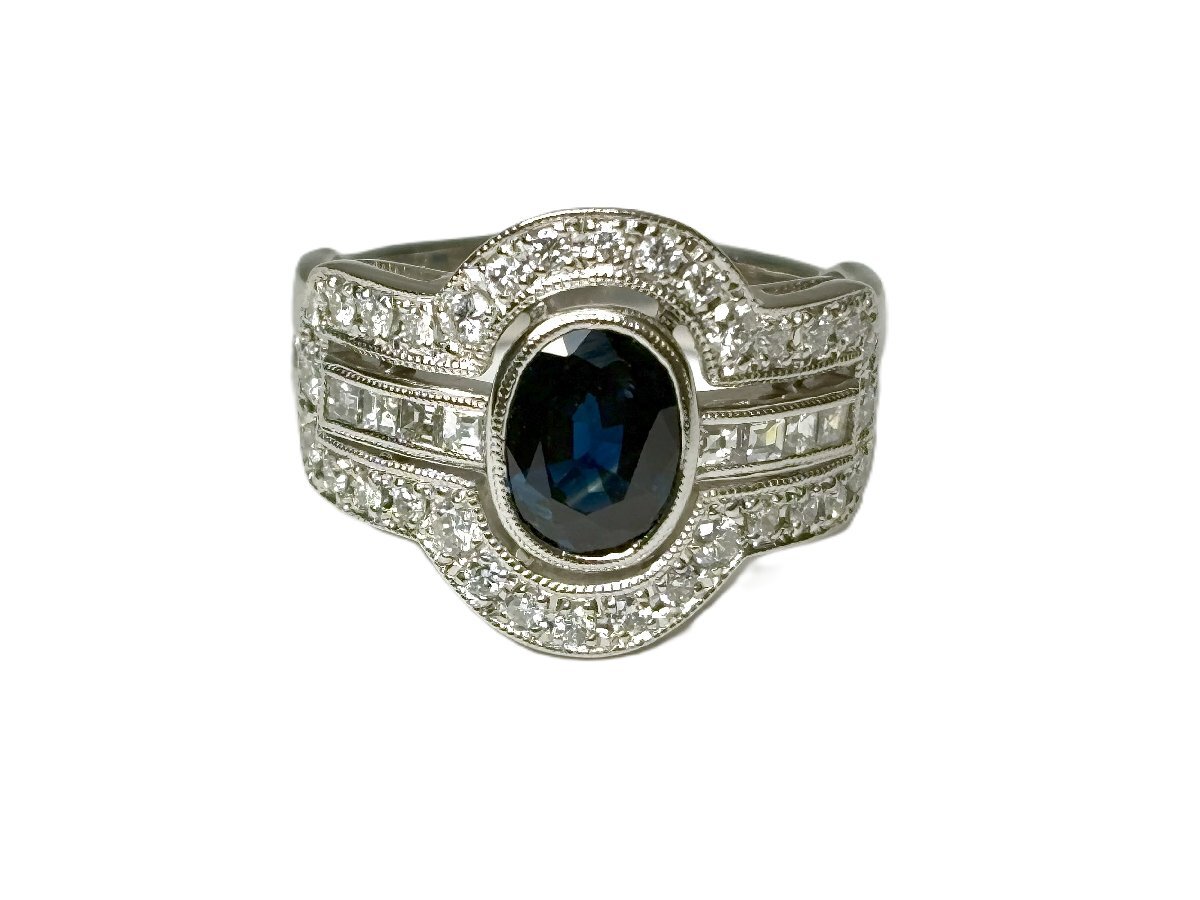 - Pt プラチナ サファイア1.65ct ダイヤ0.651ct リング 指輪 サイズ14号 ジュエリー ソーティング付 アクセサリー 宝石 Diamond NBJ