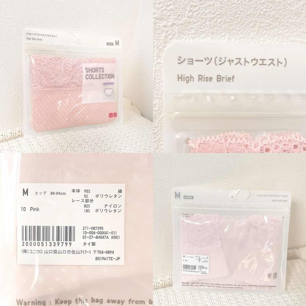 - ★新品★ユニクロUNIQLOショーツ ジャストウエストMサイズ ハイライズ パンティ下着インナー レース スタンダード10:PINKピンク白ホワイト