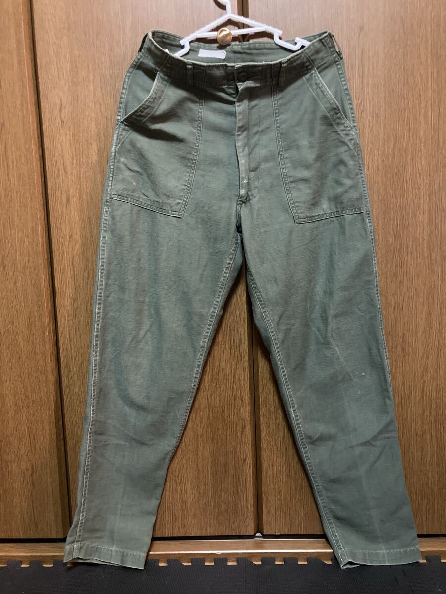 - 70s OG-107 ベイカーパンツ W30 L31 ジッパー ファティーグパンツ US ARMY ビンテージ 米軍実物 ワークパンツ カーキ