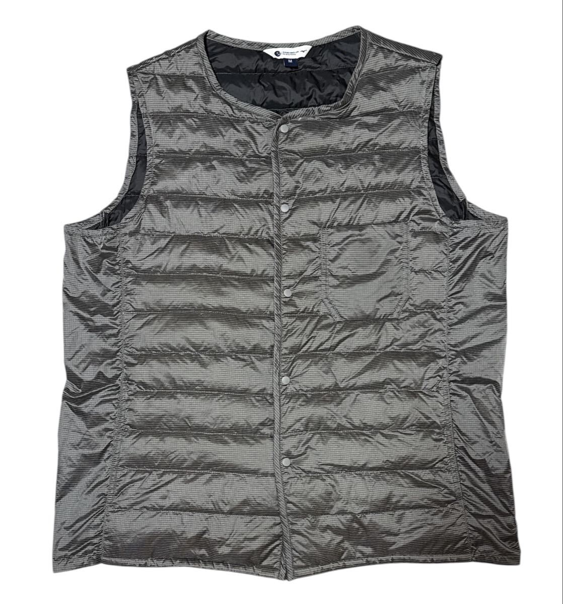 - ▲ Mizuno ミズノ 52Gotobymizuno ▲ 格子柄 ロゴ刺繍 胸ポケット付 ノーカラー フロントスナップボタン ブレスサーモ ライト ダウンベスト