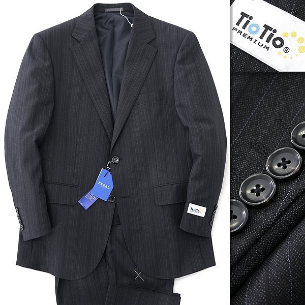 > 新品 リーガル 抗菌消臭 防汚 防花粉 洗える ストライプ スーツ AB5(幅広M) 濃灰 【J47308】 秋冬 ウール Tio Tio セットアップ グレー