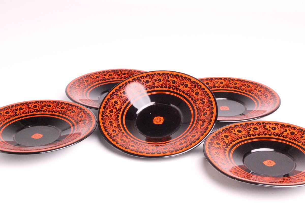 蒟醤 キンマ塗 唐草文 茶托 5客「共箱」