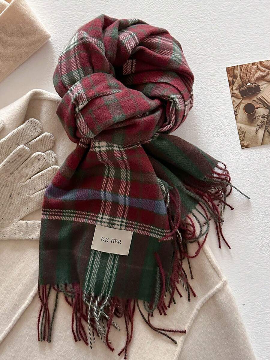 - アクセサリー レディース スカーフ 1枚 クラシックチェック柄スカーフ、暖かいフェイクカシミアショール レディース、寒い季節に使え