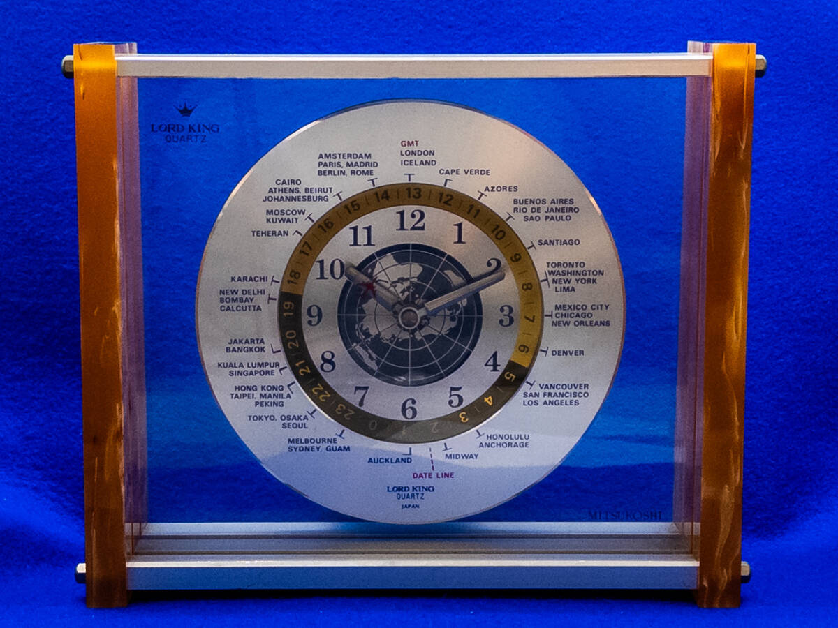 3Q売切!税無し◇昭和レトロ LORD KING 世界時計☆三越☆アナログ 置時計☆ジャンク☆☆1114-4