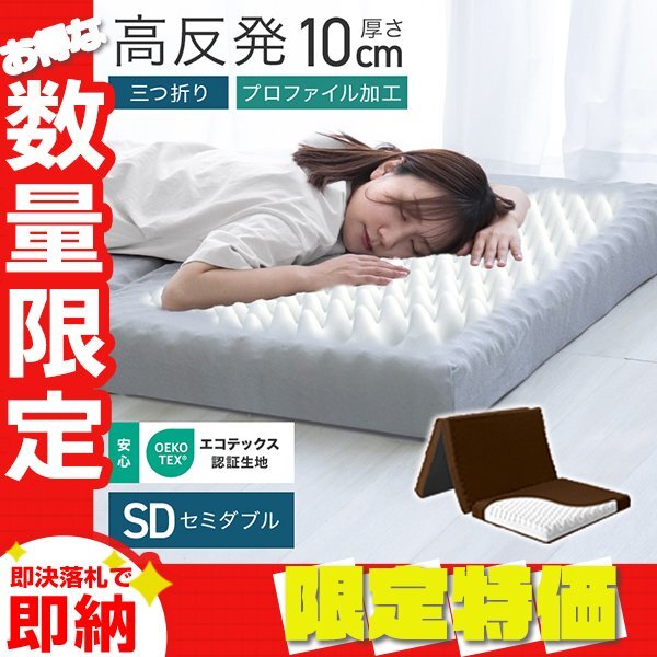 > 【限定セール】マットレス セミダブル 高反発 プロファイル加工 三つ折り 極厚10cm ベッドマットレス 洗えるカバー 腰痛 体圧分散 ブラウン