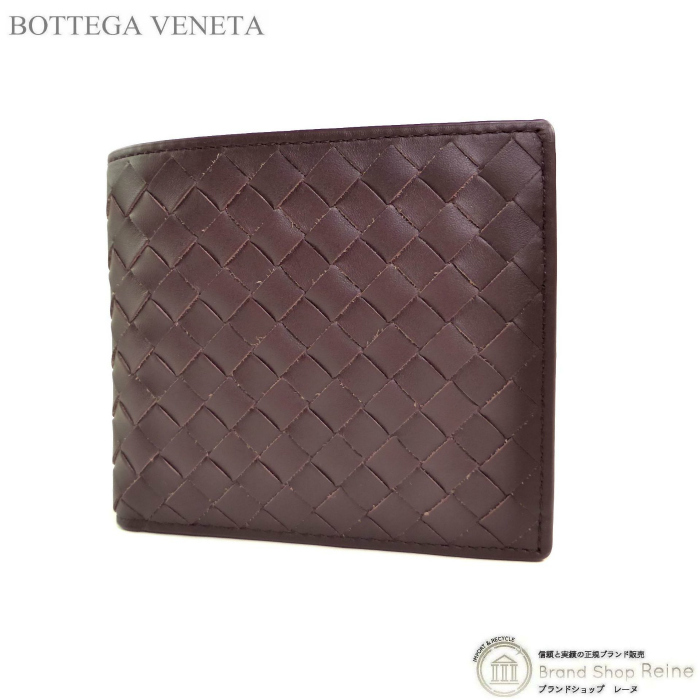 - ボッテガ ヴェネタ (BOTTEGA VENETA) イントレチャート コンパクト 二つ折り 財布 193642 ボルドー メンズ(未使用品)中古
