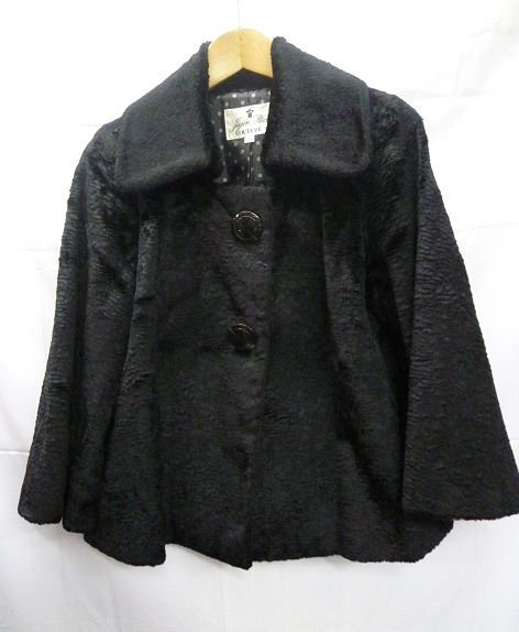 > 十仁プラザ クチュール☆Jujin Plaxa COUTURE フェイクファー ショートコート 38(M)黒 ブラック 日本製 美品