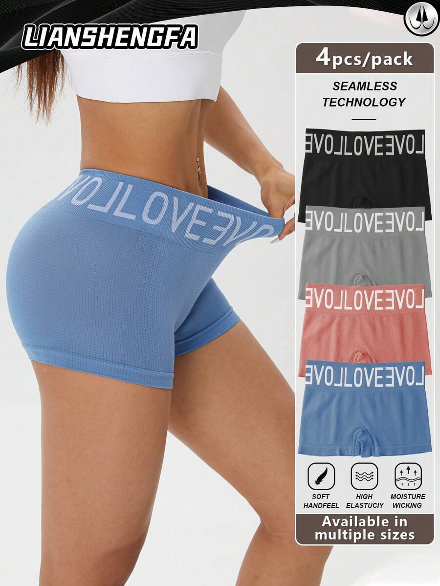 - インティメート ショーツ 4枚セット レターウエストバンド シームレス ミドルウエスト シェイピングショーツ、高伸縮性 通気性メッ