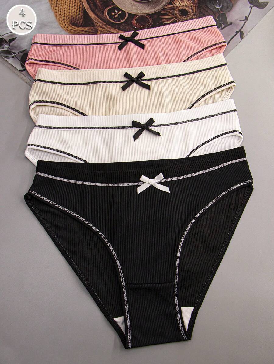 - インティメート ショーツ 女性用ミルクシルク かわいいリボンデザイン ゆとりのあるスポーツトライアングルショーツ 4枚セット