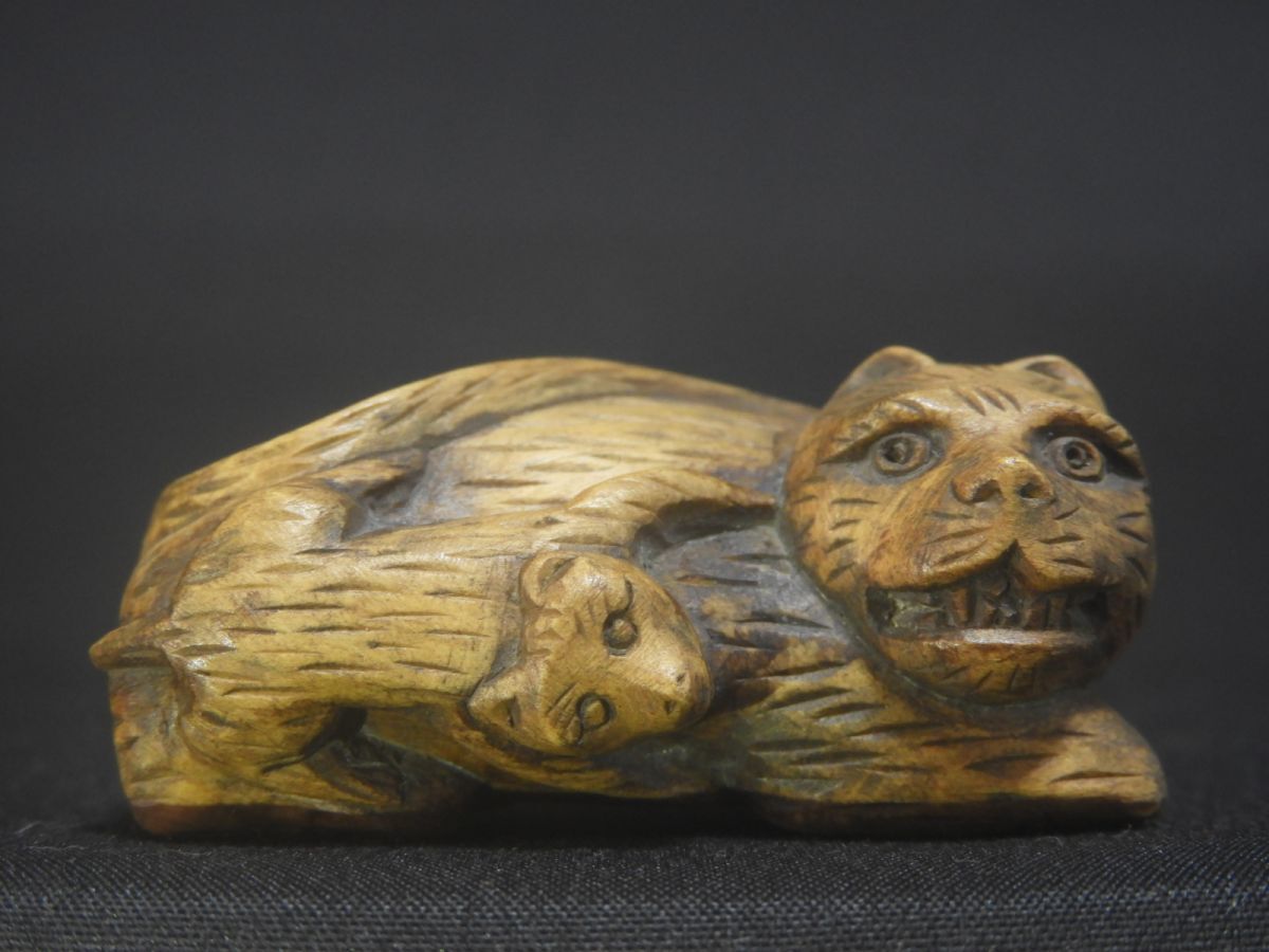 - 根付 ねこ 木彫 【送料無料】 (g-1)