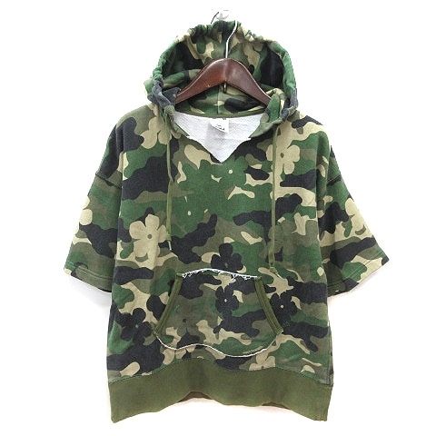 > エックスガール x-girl パーカー スウェット 迷彩柄 カモフラ 五分袖 2 カーキ 黒 ブラック /MS レディース