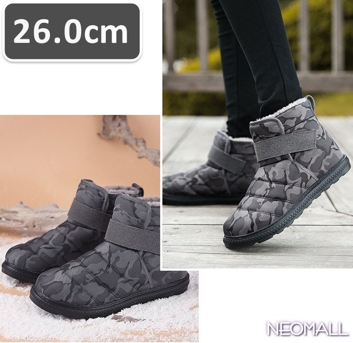 > ユニセックス スノーシューズ 【870】 26.0cm 迷彩グレー ムートンブーツ スニーカー ウィンターブーツ 裏起毛 防水 防寒 防滑 冬用靴
