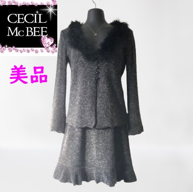 - 【美品】セシルマクビー アンサンブル ワンピース 上下 セット ラメ入 ファー付 M
