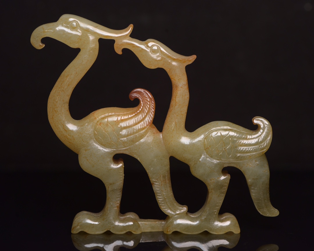 - 旧蔵 和田玉彫 仙鶴 根付 中国古玩 骨董品 時代物 稀少唐物