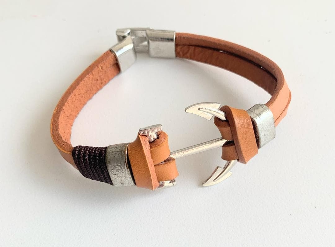 - 中古美品 20cm レザー アンカー型 バングル 男女兼用 メンズレディース