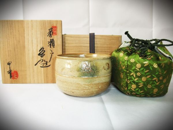 - 【睦】黄瀬戸 銘「冨士雄」 抹茶茶碗 茶道具 仕覆付 未使用 共箱■