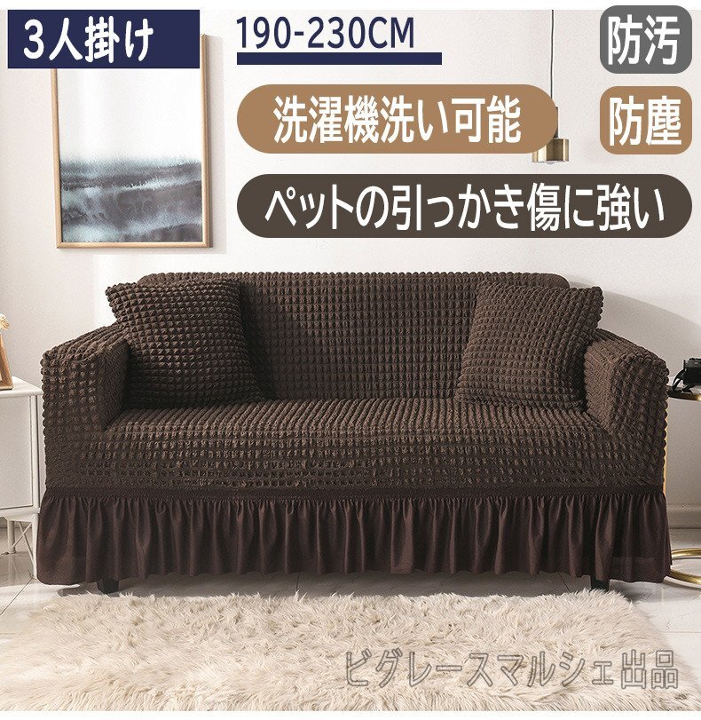 - ソファーカバー 3人掛け 北欧モダン 防塵ソファーカバー 防汚 洗濯機洗い可能 シンプル ペットの引っかき傷防止 ブラウン