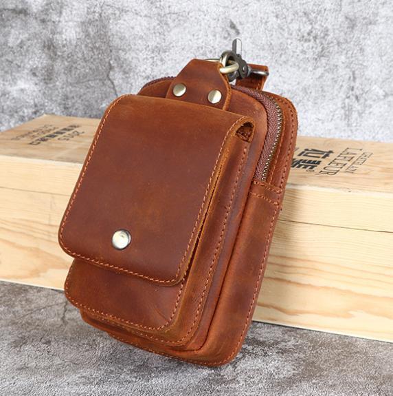 - 送料コミコミ☆ メンズ 本革 2wayバッグ ライトブラウン 牛革 ヒップバッグ ウェストポーチ 多機能 【n221】