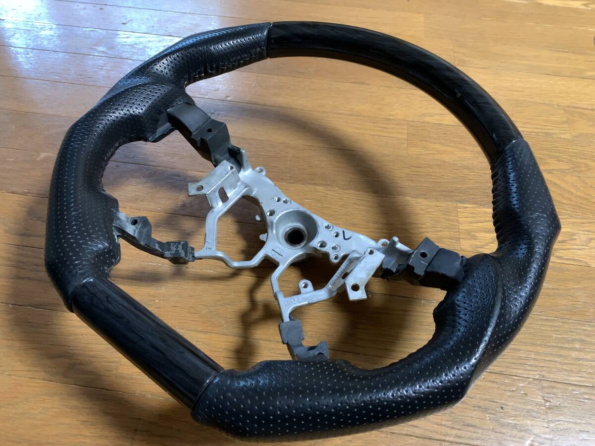 > ★25-757 200系 ハイエース 4型 ~ 8型 黒木目 × 本革 ブラックパンチングレザー コンビ ステアリング / ハンドル