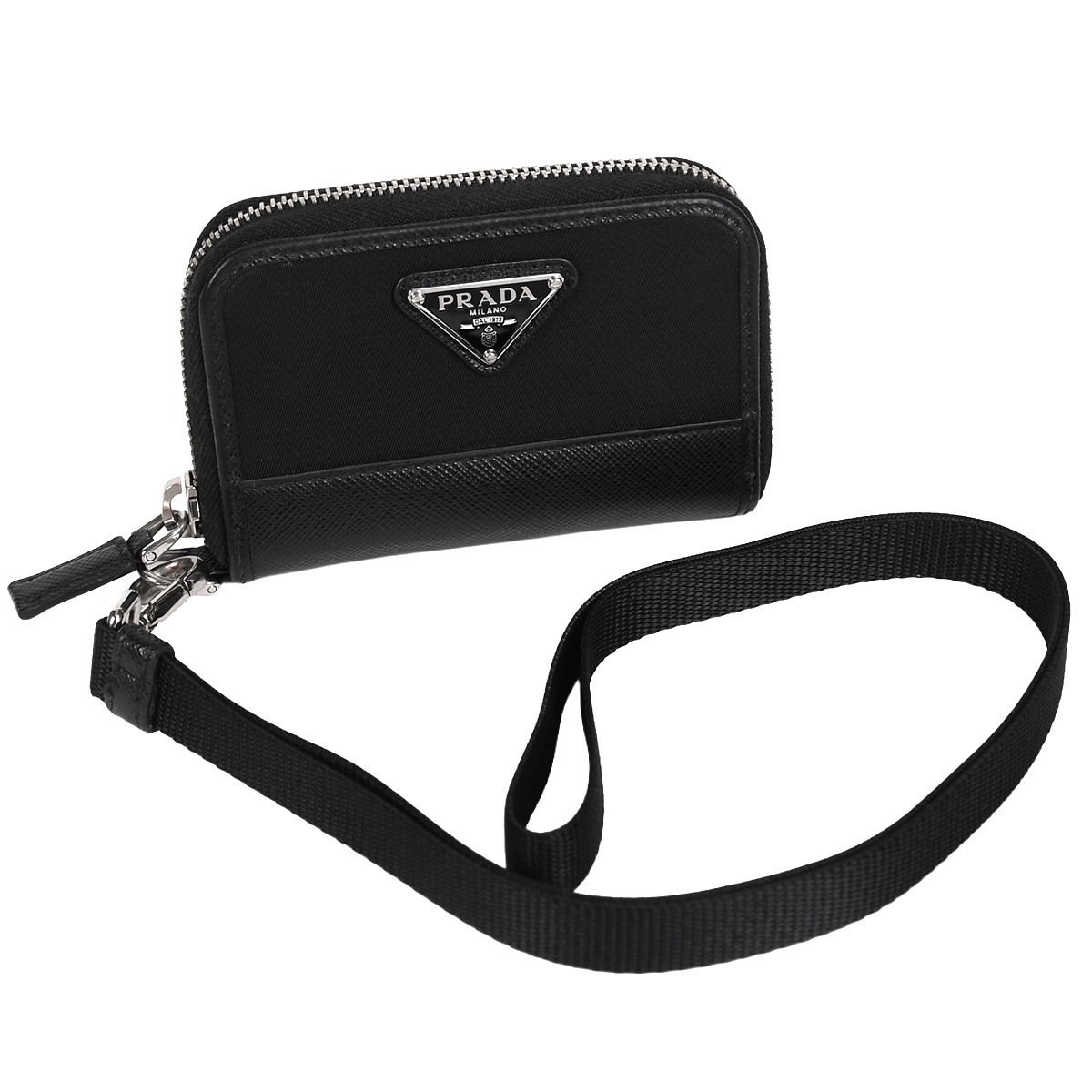 > プラダ PRADA トライアングルロゴ コインケース カードケース 小銭 ミニ財布 ネックストラップ ナイロン サフィアーノレザ 黒 2MR039 中古