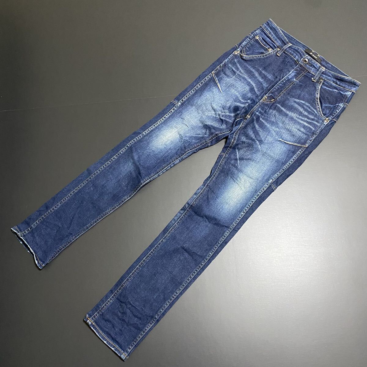 > Johnbull ジョンブル スキニー デニムパンツ ジーパン ジーンズ ストレッチ 色落ち加工 シンチベルト オールシーズン インディゴ メンズ M