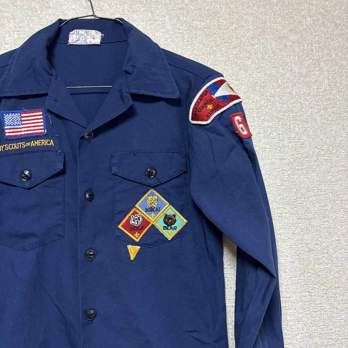 > 70s USA製 BOYSCOUTS OF AMERICA ボーイスカウトシャツ アメリカ ビンテージ 長袖シャツ ネイビー サイズ14 メンズSサイズ相当