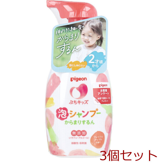 - ピジョン ぷちキッズ 泡シャンプーからまりするん フレッシュアップルの香り 本体 300mL 3セット