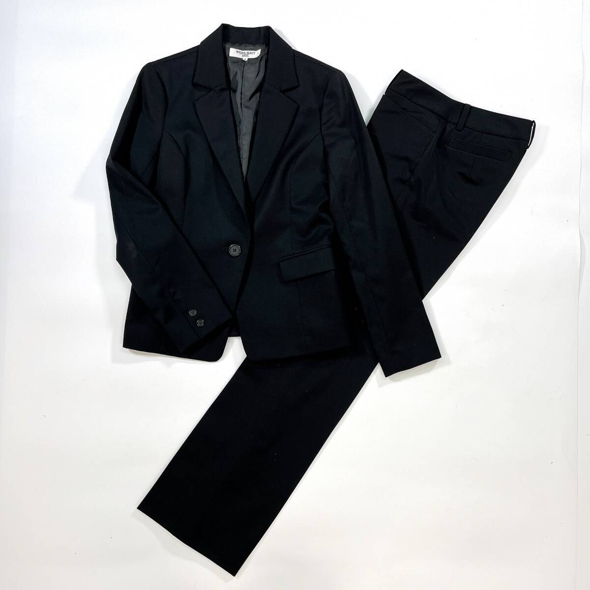 > NATURAL BEAUTY BASIC ナチュラルビューティーベーシック 毛100% レディース パンツスーツ ブラック M オフィスコーデ ☆1217y