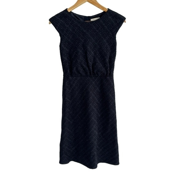- エポカ EPOCA サイズ38 M - ダークネイビー×黒 レディース ノースリーブ/ひざ丈/ツイード/ラメ 美品 ワンピース